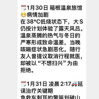 因为不想扫兴,冒着本就不舒服的身体长途跋涉,在发烧38度时,仍坚持和家人一起泡露天温泉。当晚病情持续加重,她却拒绝了友人的提议去就医。就那样拖到第二天……